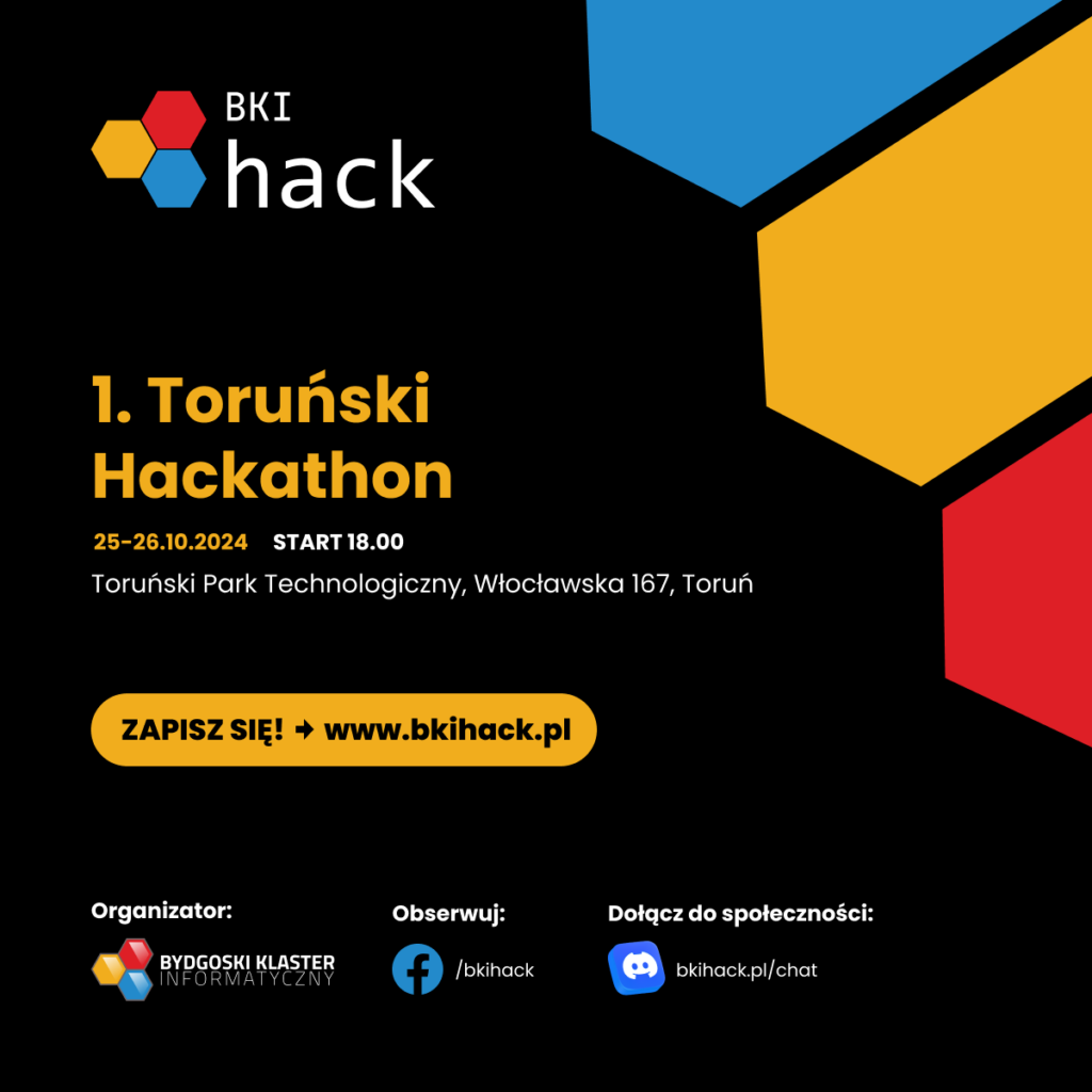 Bydgoski Klaster Informatyczny z dumą zaprasza wszystkich programistów, uczniów, studentów, mentorów, sponsorów i partnerów do udziału w nadchodzącej edycji naszego hackathonu. ? Tym razem spotykamy się w Toruniu – bądźcie z nami!